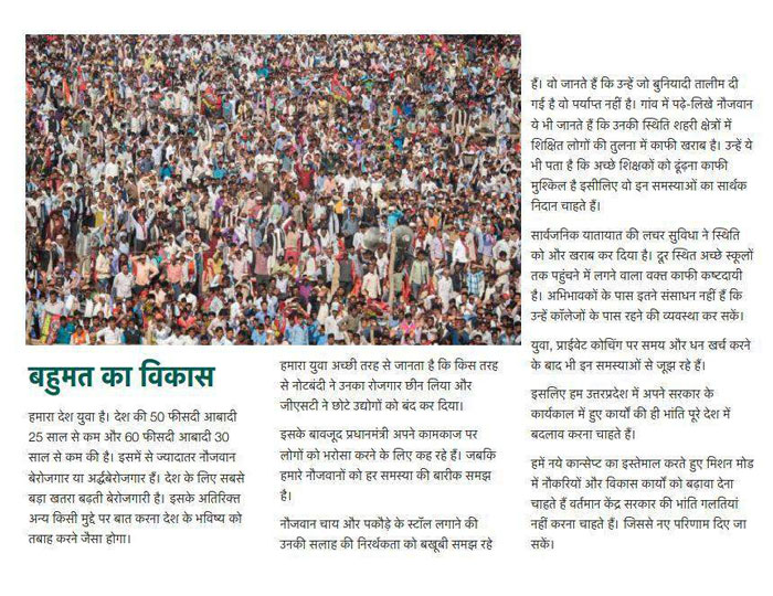 घोषणा पत्र के बारे में उन्होंने कहा कि सामाजिक न्याय से महापरिवर्तन को जनता के बीच ले जाने का काम इस किताब के माध्यम से किया जा रहा है। हमारे दल की विचारधारा के क्या विचार हों उसको लेकर जनता के बीच जा रहे हैं।