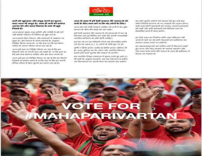सपा ने जारी किया घोषणा पत्र, जानें 10 महत्वपूर्ण बातें !