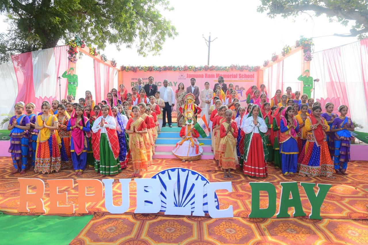 26 जनवरी 2026 को जमुना राम मेमोरियल स्कूल के प्रांगण में 76वां गणतंत्र दिवस समारोह बड़े हर्षोल्लास, उत्साह और गरिमामय वातावरण में संपन्न हुआ। इस अवसर पर नर्सरी से लेकर कक्षा 12वीं तक के विद्यार्थियों ने रंगारंग सांस्कृतिक कार्यक्रम प्रस्तुत कर उपस्थित अतिथियों एवं अभिभावकों का मन मोह लिया।