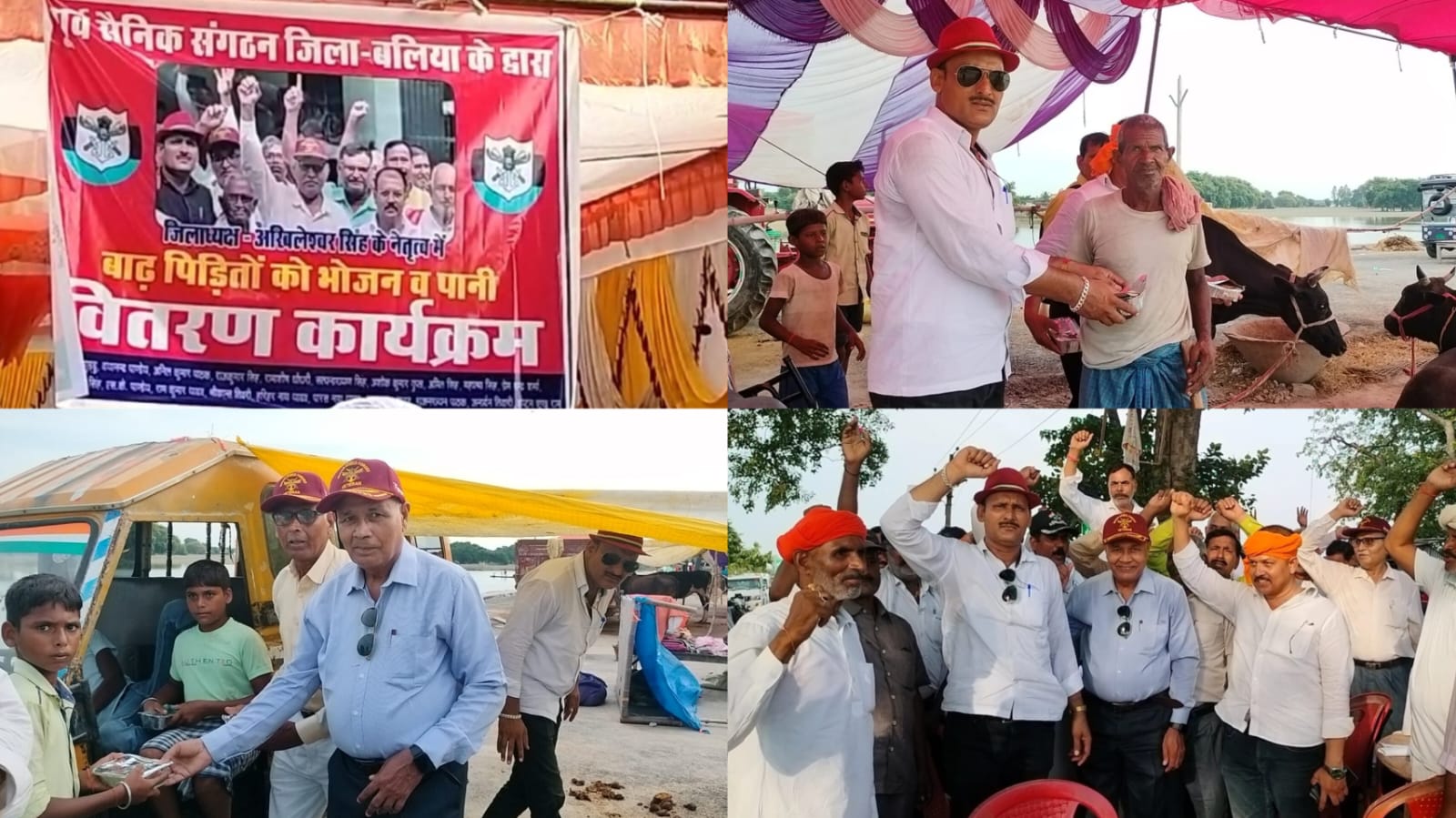 बलिया में इस समय बाढ़ से हालात ख़राब हैं। जनजीवन पूरी तरह अस्त व्यस्त है। बैरिया क्षेत्र चाँदपुर दियर में बलिया के पूर्व सैनिकों द्वारा बाढ़ पीड़ितों को दोपहर का भोजन और पानी वितरित किया गया। पुर्व सैनिक संगठन के जिला अध्यक्ष अखिलेश्वर सिंह ने कहा कि जिले के समस्त ब्लॉक के पूर्व सैनिक जनता की मदद के लिए आगे आए हैं।