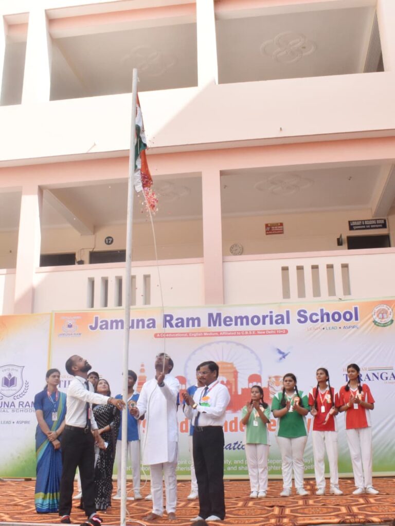 फेफना (बलिया)। जमुना राम मेमोरियल स्कूल में 79वां स्वतंत्रता दिवस धूमधाम से मनाया गया। कार्यक्रम की शुरुआत प्रबंध निदेशक तुषार नंद व प्रधानाचार्य एब्री केबी द्वारा ध्वजारोहण के साथ हुई।