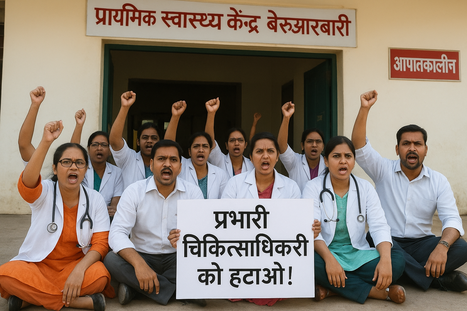 बलिया। जनपद के बेरूआरबारी प्राथमिक स्वास्थ्य केंद्र (पीएचसी) में बुधवार को स्वास्थ्यकर्मियों का गुस्सा फूट पड़ा। प्रभारी चिकित्साधिकारी के खिलाफ नाराजगी जताते हुए स्वास्थ्यकर्मी पीएचसी परिसर में धरने पर बैठ गए और जमकर नारेबाजी की। कर्मचारियों ने प्रभारी चिकित्साधिकारी को तत्काल हटाए जाने की मांग की।