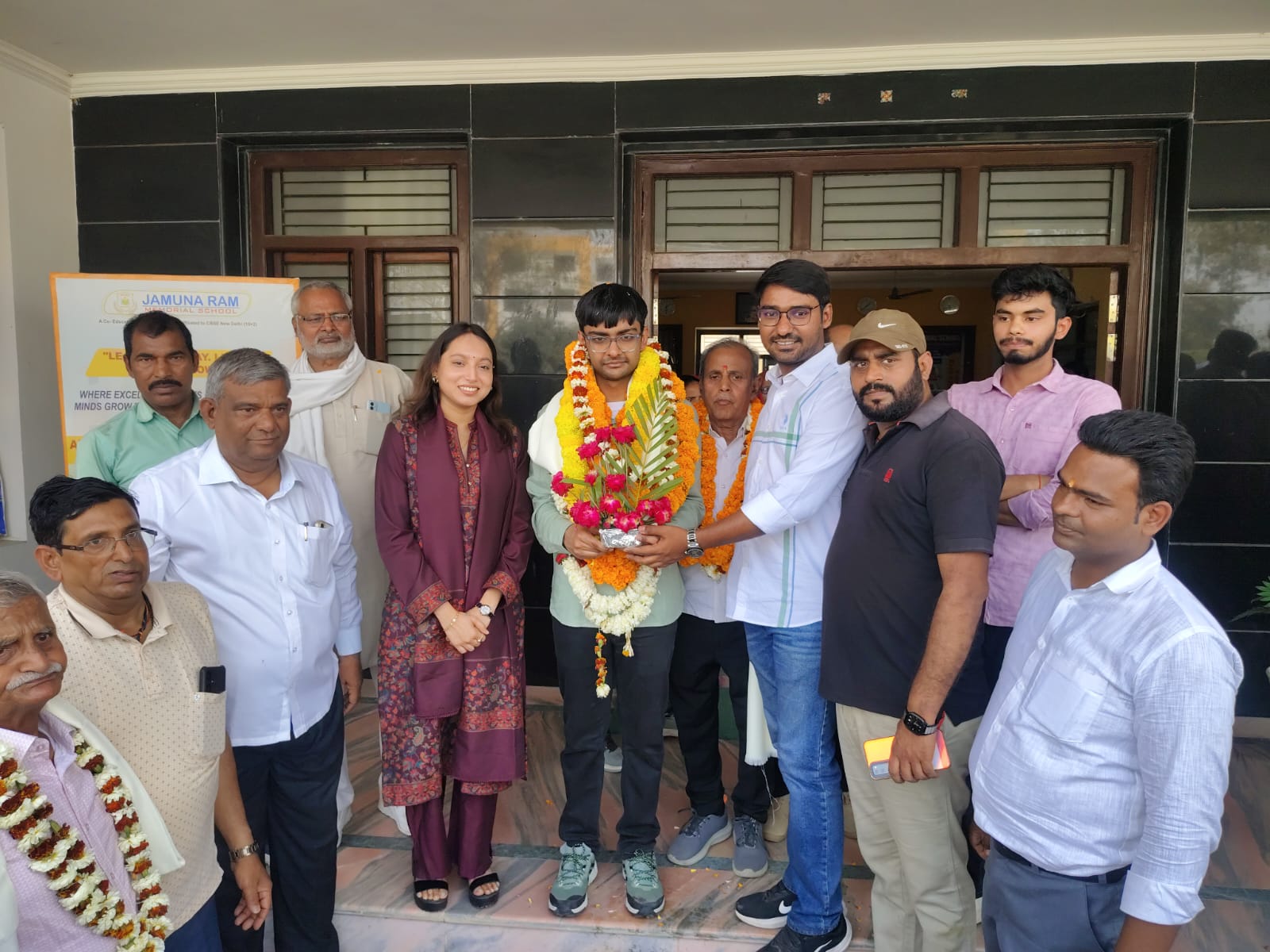 UPSC में सफलता पर बलिया के जमुना राम मेमोरियल स्कूल में आदित्य कृष्ण तिवारी का सम्मान