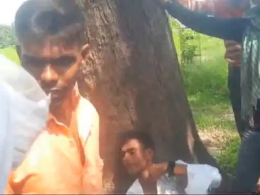 पेड़ के नीचे बैठा युवक कहना है कि ये लोग झूठ बोल रहे हैं, लड़की मुझसे मुलाकात करने आई थी। उसने मुझे कहा कि भैया है, तो मैं भागने लगा। तभी दूसरे लोग मुझकर फोन चोरी का इल्जाम लगाने लगा।
